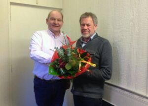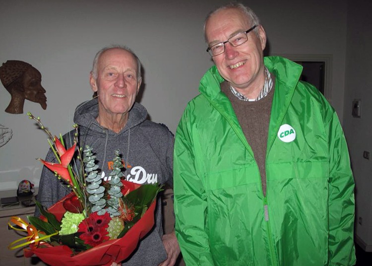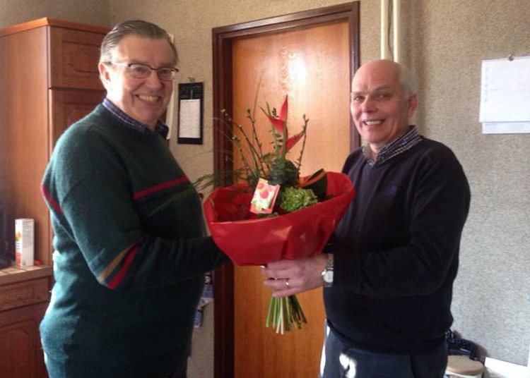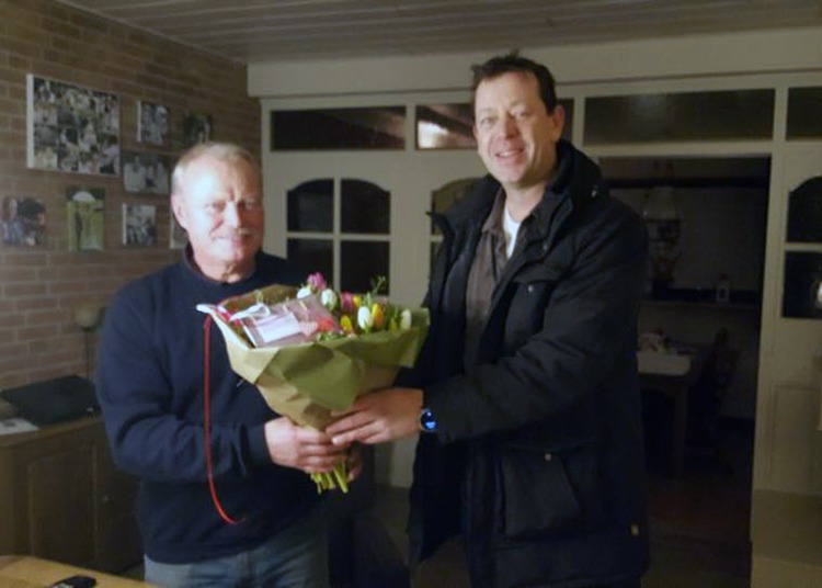 Ferdi de Boer(Losser) is zeer ingenomen met de bloemen als stille dank voor zijn inzet op tal van activiteiten in het Losserse. Met zijn oud ijzer actie heeft hij ruim 160.000, — euro opgehaald in de afgelopen jaren; wel stopt Ferdi binnenkort i.v.m. leeftijd van 70 jaar. Desondanks loopt hij nog de Enschedese halve marathon op de 22e april en de kwart triatlon in Holten in de zomer. De lijst van ondersteunde activiteiten is indrukwekkend. Zo is er 29 april a.s. een dag voor gehandicapten en op 6 juni is er een boottocht voor 200 ouderen, vanaf Zwolle naar Kampereiland en weer terug. Ferdi regelt alles in zijn eentje, er is geen of comité of bestuur. Een maatschappelijke duizend poot!